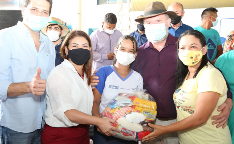 Durante entrega de kits de gêneros alimentícios, o governador Denarium anunciou investimentos na infraestrutura das escolas