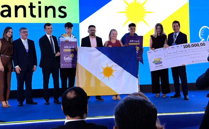 Os gestores escolares José Antônio Aguiar Gama, da Escola Estadual Professora Elizângela Glória Cardoso, de Palmas, e Amísia Cristina Souza Urzedo Neta, do Colégio Estadual José Seabra Lemos, de Gurupi, participaram nesta quinta-feira, 26, da solenidade de premiação da Olimpíada do Tesouro Direto de Educação Financeira (Olitef), realizada em São Paulo. Também participaram do evento os estudantes Arthur dos Santos Amorim, da Escola Professora Elizângela, e Samuel Botelho, do Colégio José Seabra.
